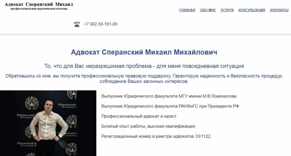 Официальный сайт: http://advokat-speranskiy.ru/index.htm