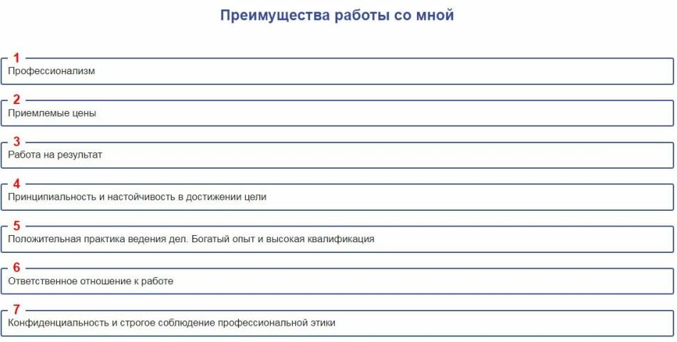 Сотрудничество с профессиональными юристами позволяет заручиться своевременной, квалифицированной правовой поддержкой. Информация, предоставляемая адвокату, остается конфиденциальной. Добросовестный юрист ведет дело сразу после подписания договора, не тратит время на бумажную волокиту. Хорошее качество услуг обеспечено знаниями, опытом, умением применять противоречия и пробелы законодательных норм в интересах доверителя.